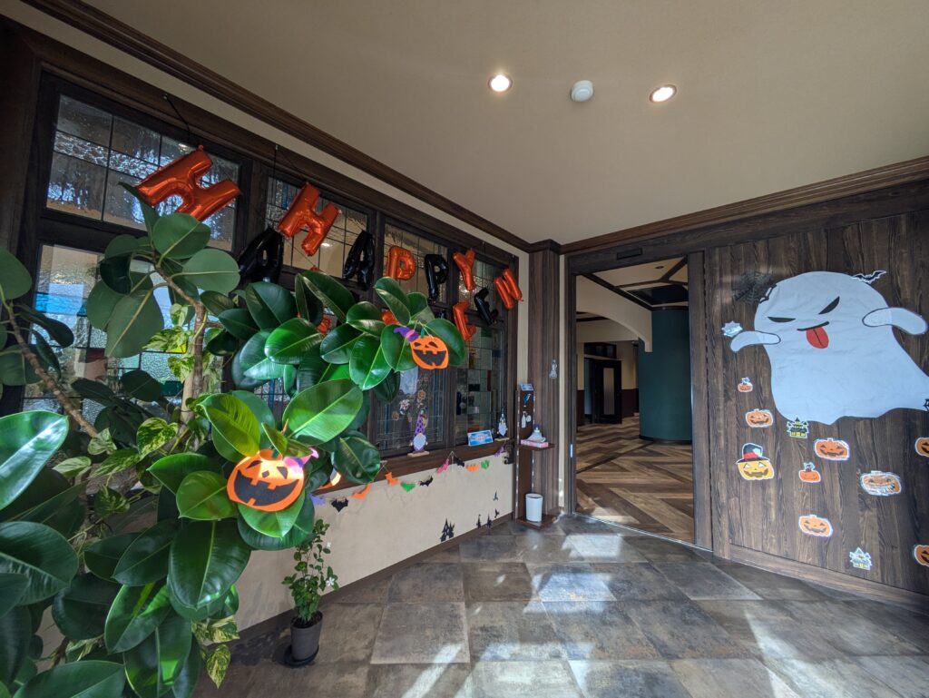 本社では、子どもたちをお迎えするために社員が手作りでハロウィン装飾を準備し、数日かけて心を込めて作り上げました。