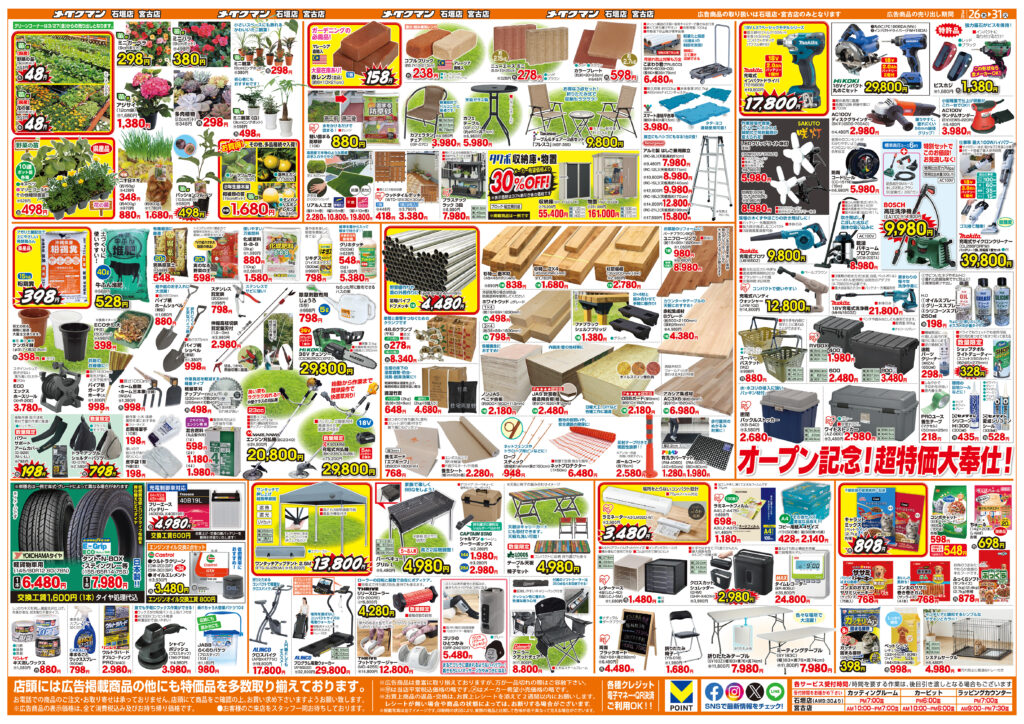 オープン記念ならではの特価商品が盛りだくさん!